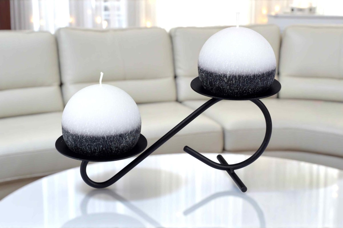 Domů » Kovové svícny » Svícen na 2 svíčky - nízký » Svícen na 2 svíčky - Nízký - Černobílá