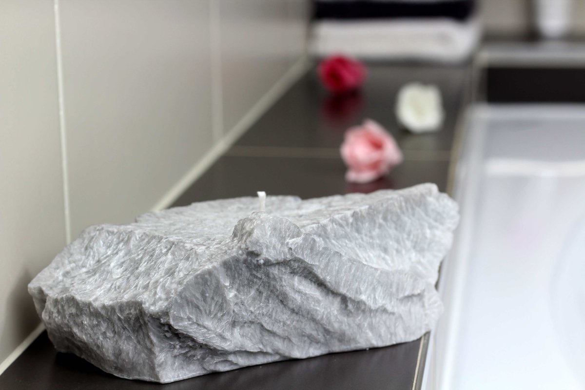 Designové svíčky ve tvaru přírodních kamenů dokonale zapadnou do koupelny, wellness i moderního interiéru.