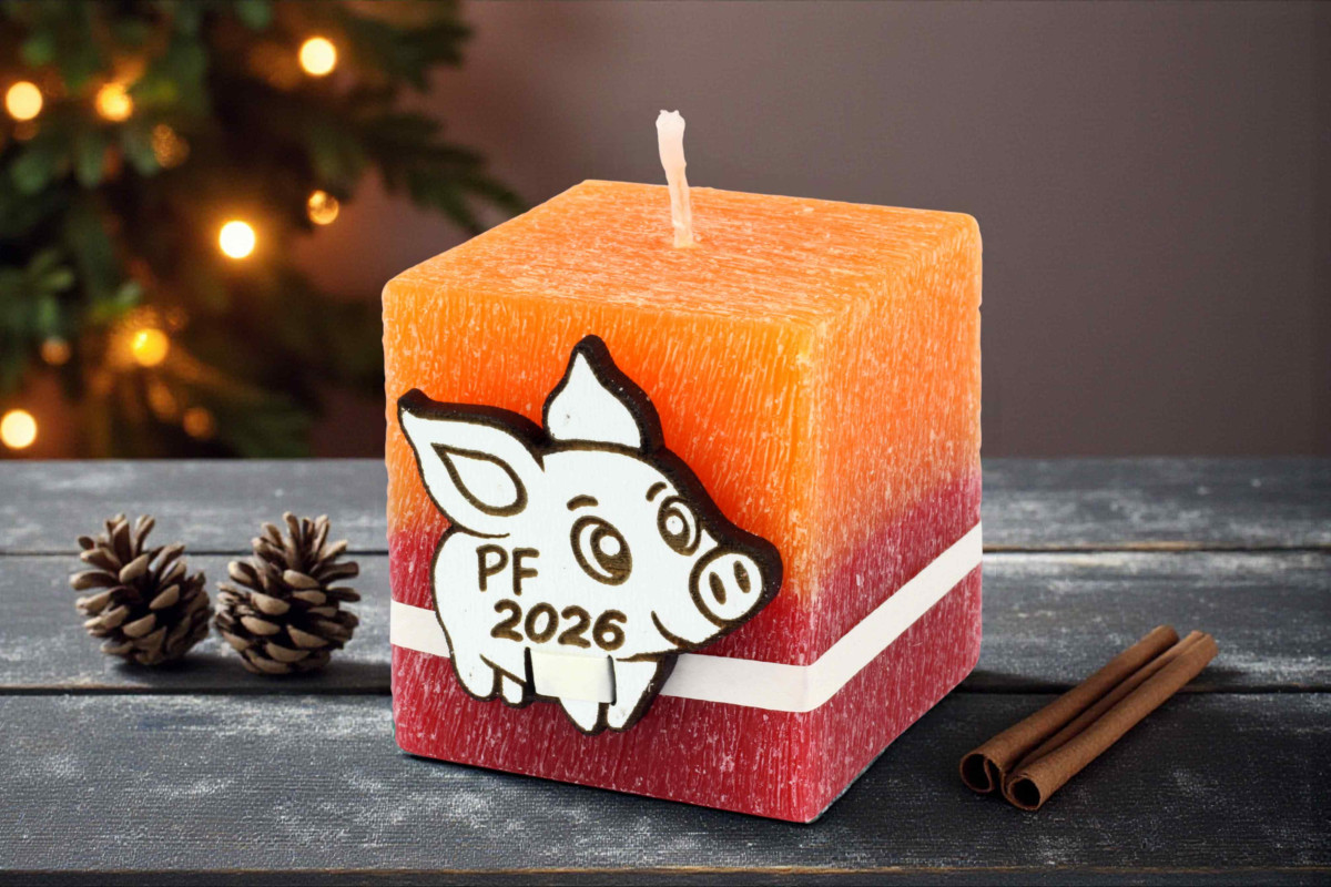 Domů » Svíčky s přáním PF 2026 » Prasátka » Svíčka PF 2026 Prasátko - tmavě oranžová