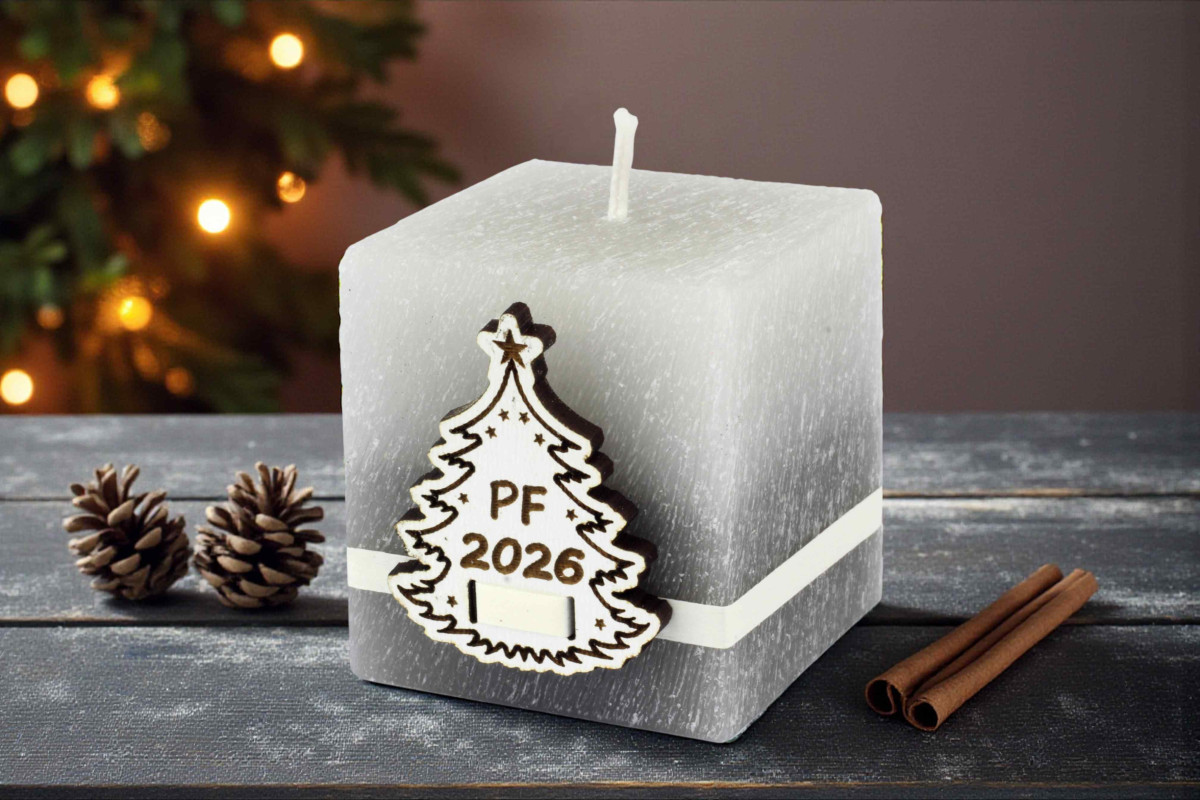 Domů » Svíčky s přáním PF 2026 » Stromečky » Svíčka PF 2026 Stromeček - šedá