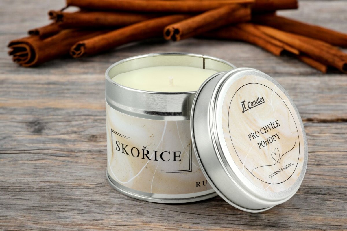 Svíčka v plechové dóze - Skořice - Stříbrná