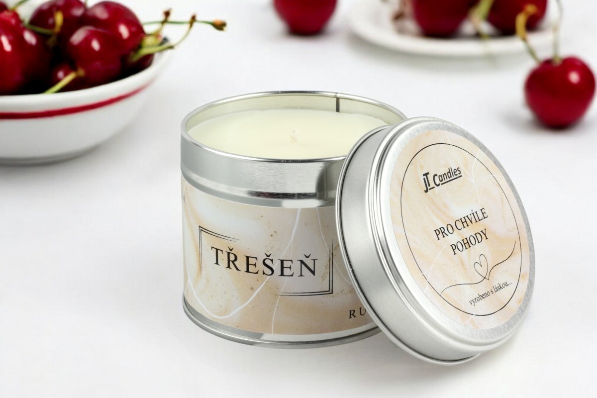 Svíčka v plechové dóze - Třešeň - Stříbrná