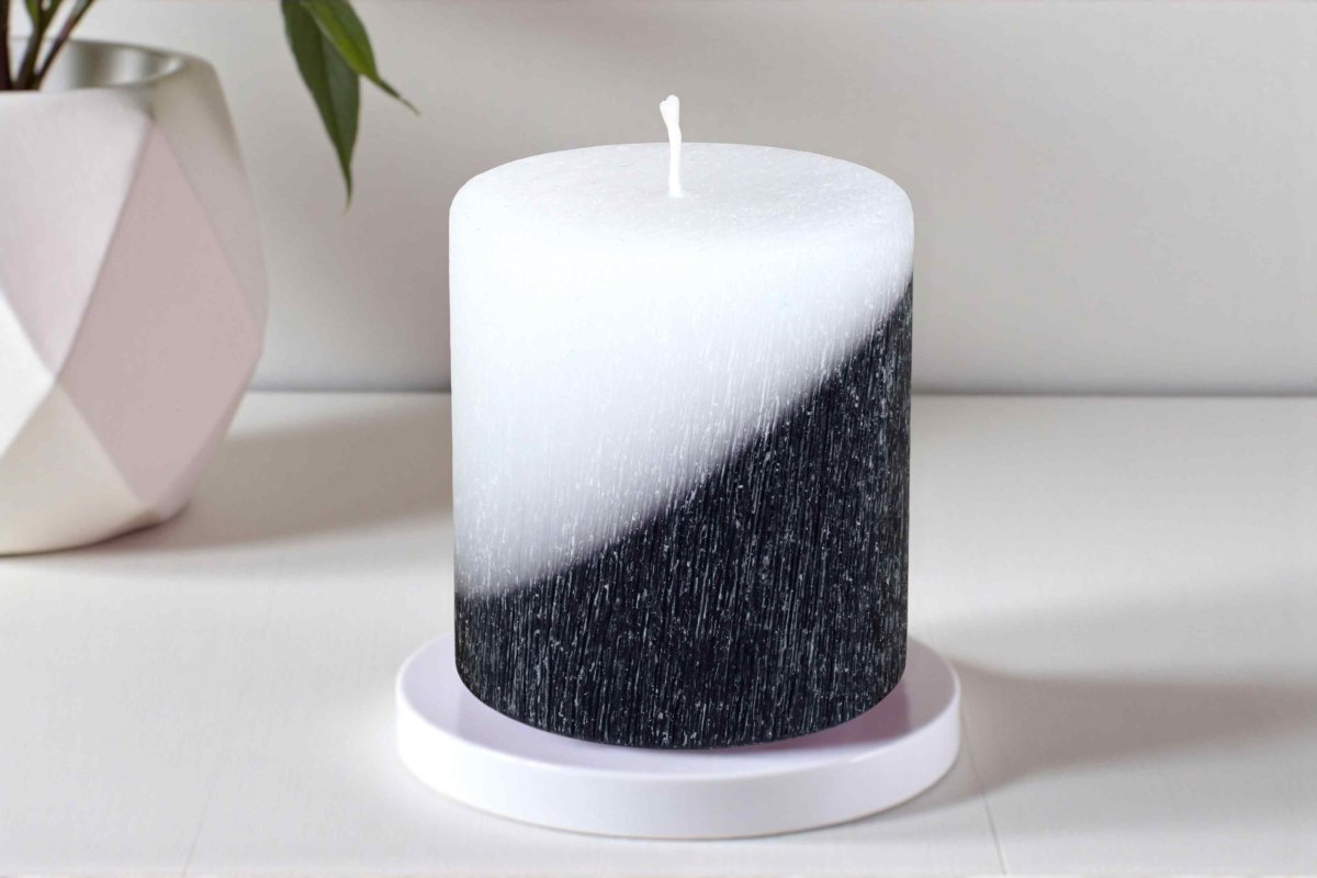Stylová dvoubarevná válcová svíčka, která slouží i jako náhradní svíčka do našich originálních svícnů.