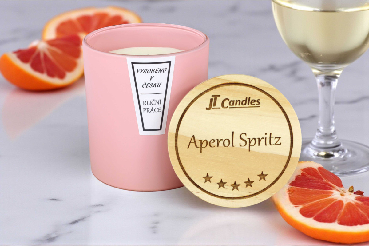 Domů » Svíčky ve skle s dřevěným víčkem » Svíčka ve skle - Aperol Spritz - růžová
