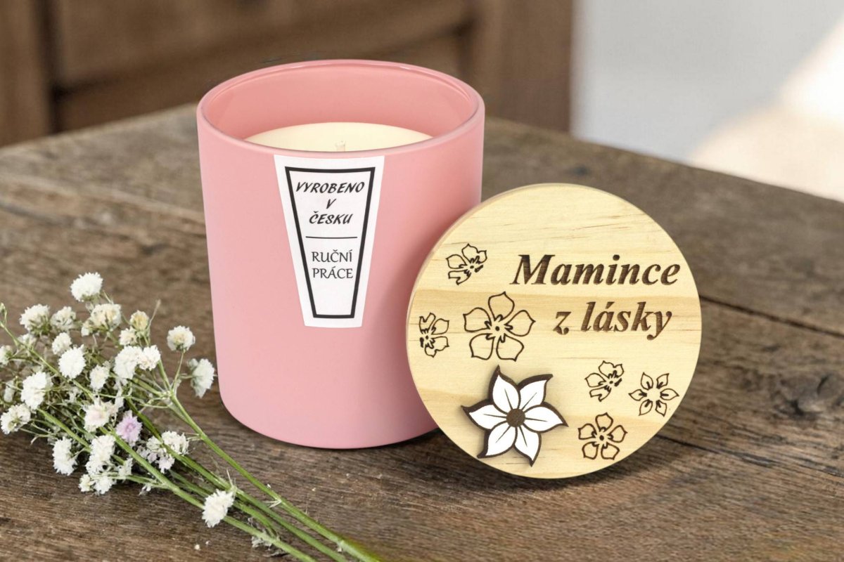 Naše ručně vyráběná svíčka ve skle s elegantním dřevěným víčkem je ideálním dárkem ke Dni matek. Každý kousek je doplněn jemným věnováním přímo na víčku, které udělá z obyčejné svíčky osobní a nezapomenutelný dárek.