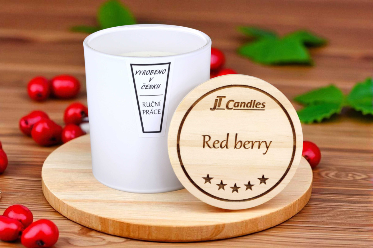 Domů » Svíčky ve skle s dřevěným víčkem » Svíčka ve skle - Red berry - bílá