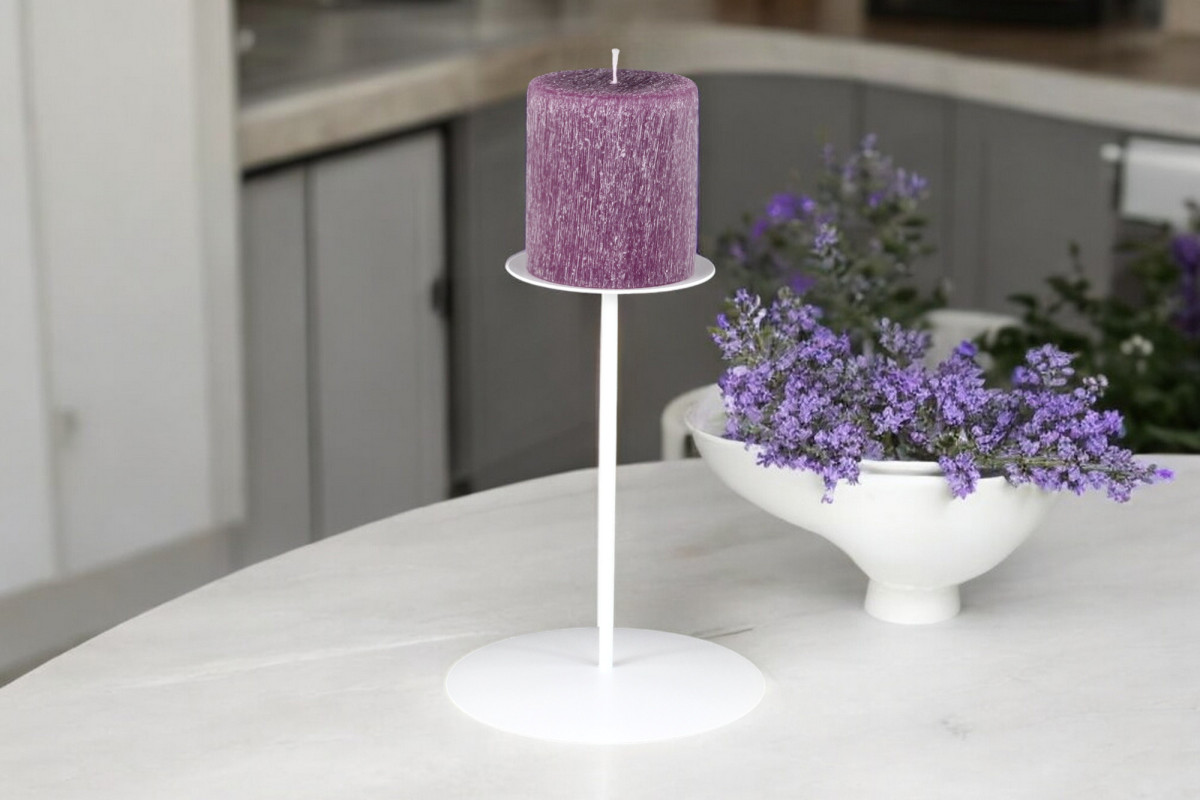 Moderní kovový svícen pro milovníky levandulových vůní . Kvalitní ruční provedení, neotřelý design.