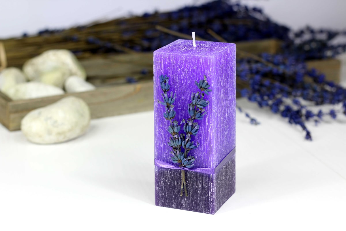 Milujete levanduli? Pak je tato svíčka přesně pro Vás! Originální svíčka ve tvaru hranolu skvěle vynikne ve Vašem interiéru.