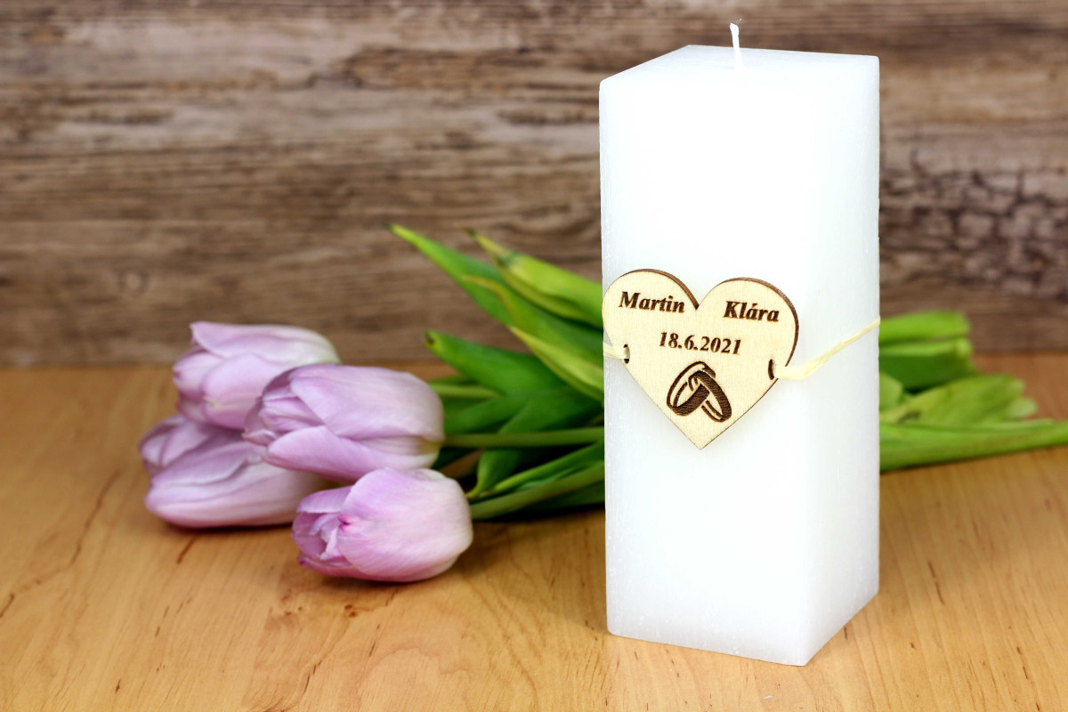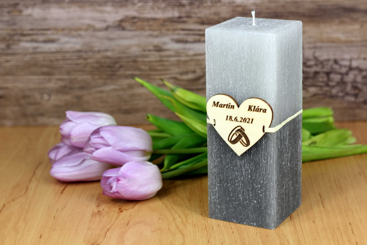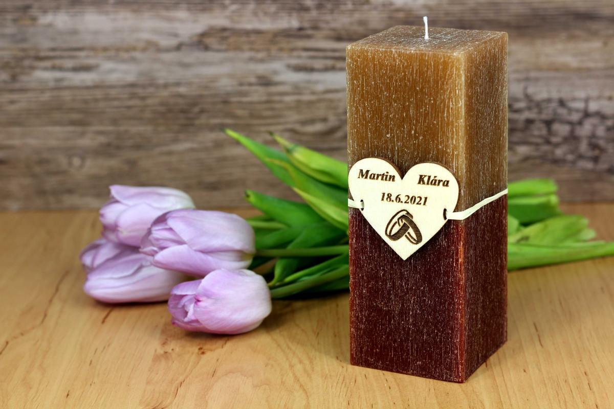 Originální svíčka z kvalitního parafínu s dřevěným motivem s textem dle Vašeho přání.