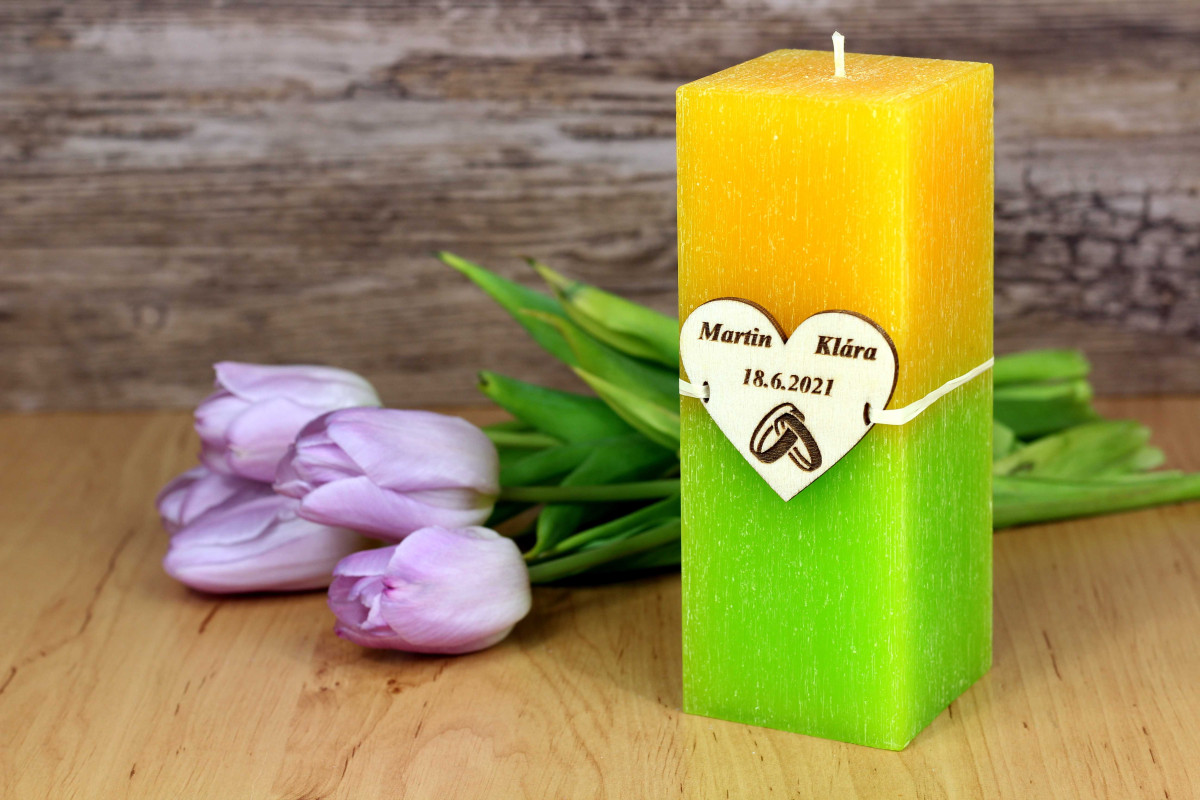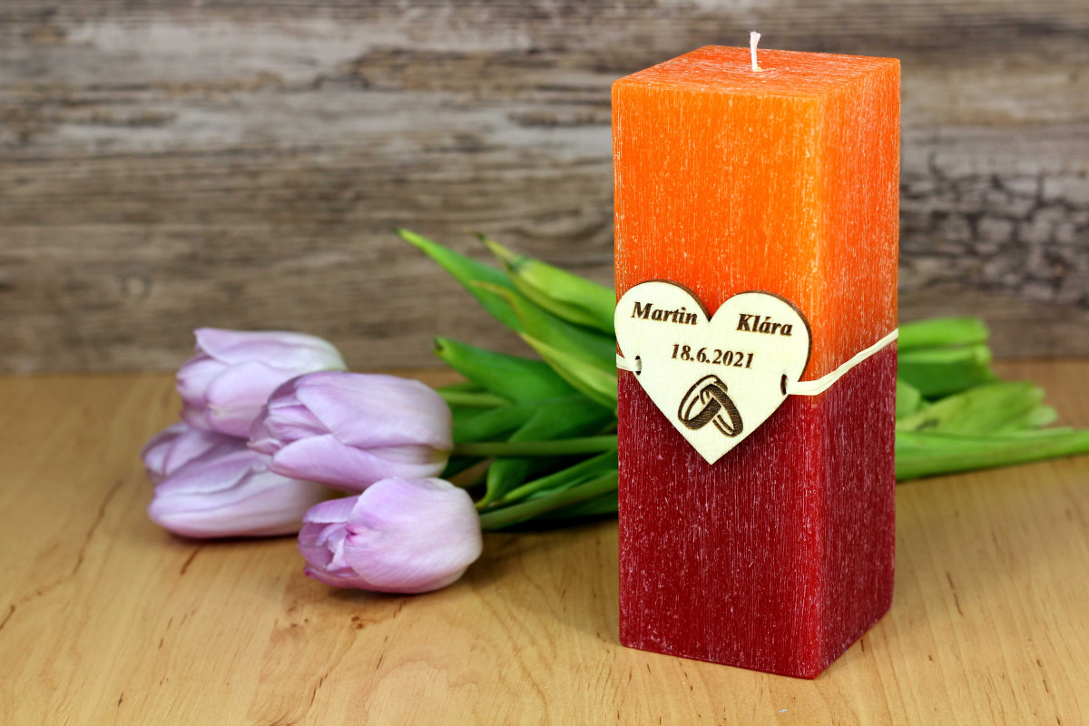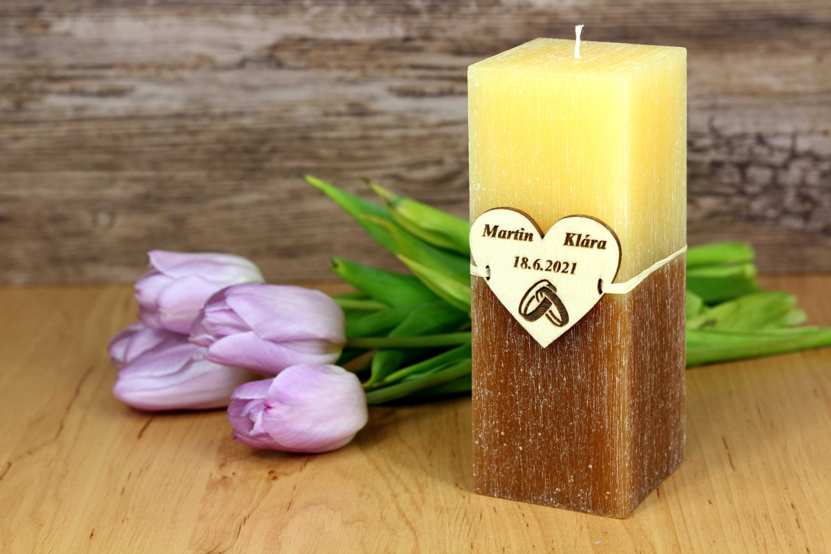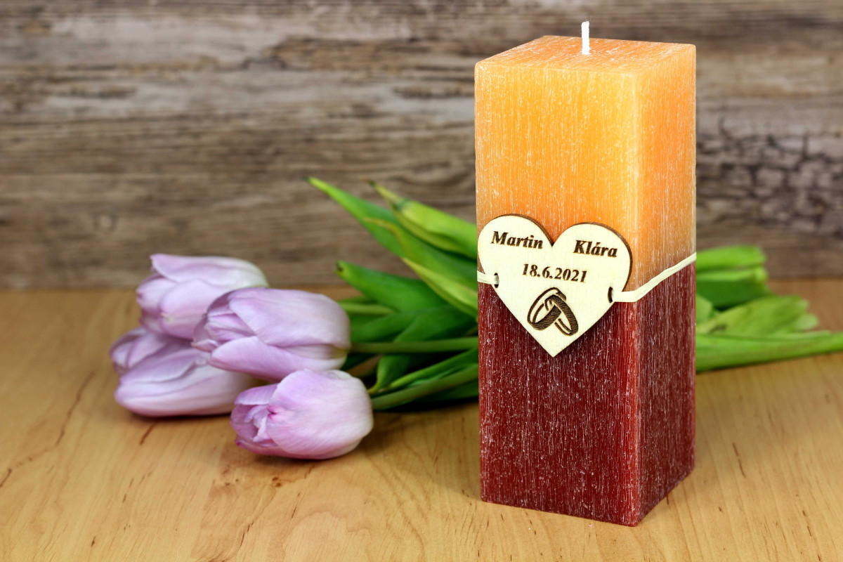 Originální svíčka z kvalitního parafínu s dřevěným motivem s textem dle Vašeho přání.