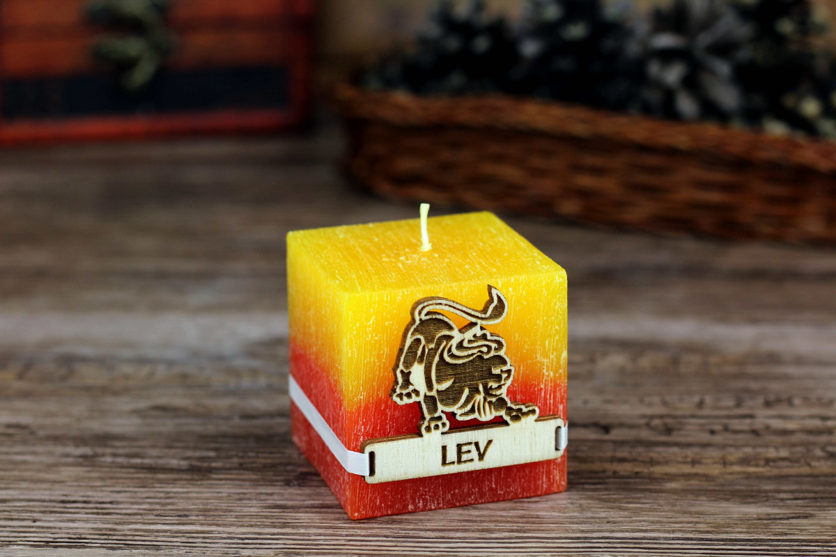 Originální svíčka z kvalitního parafínu s dřevěným motivem znamení zvěrokruhu.