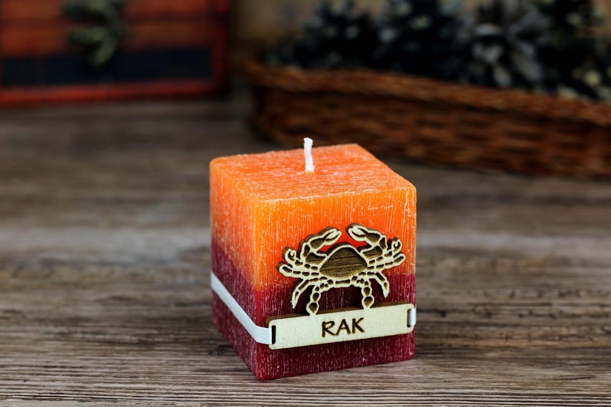 Originální svíčka z kvalitního parafínu s dřevěným motivem znamení zvěrokruhu.