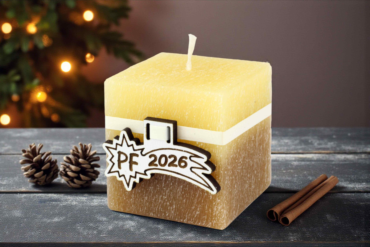 Ručně vyráběná svíčka z kvalitního parafínu. Originální přání do roku 2026.