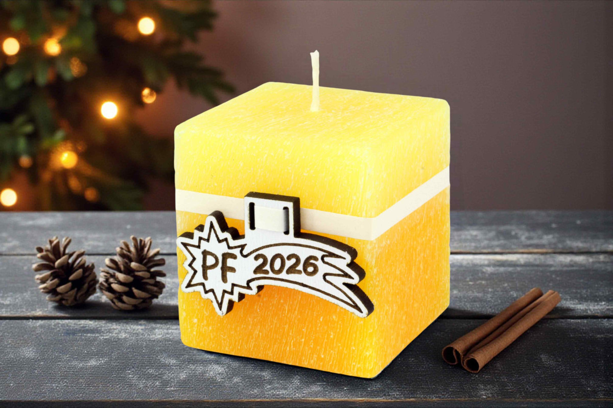 Ručně vyráběná svíčka z kvalitního parafínu. Originální přání do roku 2026.