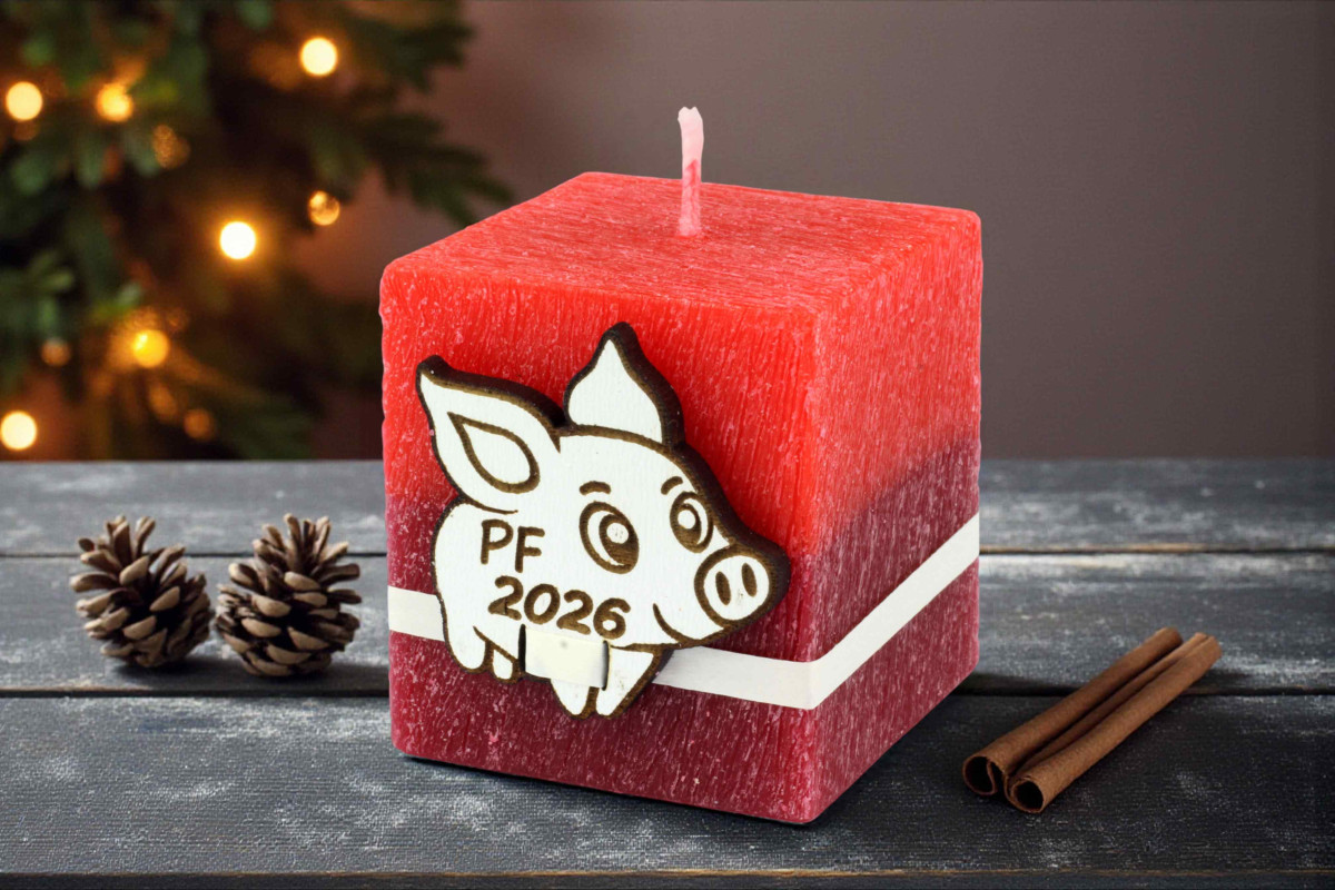 Domů » Svíčky s přáním PF 2026 » Prasátka » Svíčka PF 2026 Prasátko - červená