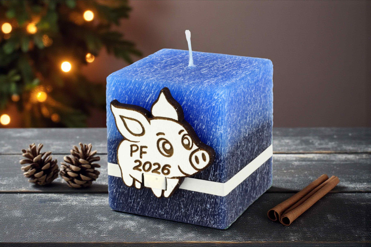 Domů » Svíčky s přáním PF 2026 » Prasátka » Svíčka PF 2026 Prasátko - modrá