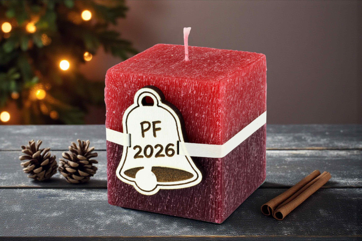Domů » Svíčky s přáním PF 2026 » Zvonečky » Svíčka PF 2026 Zvoneček - bordó
