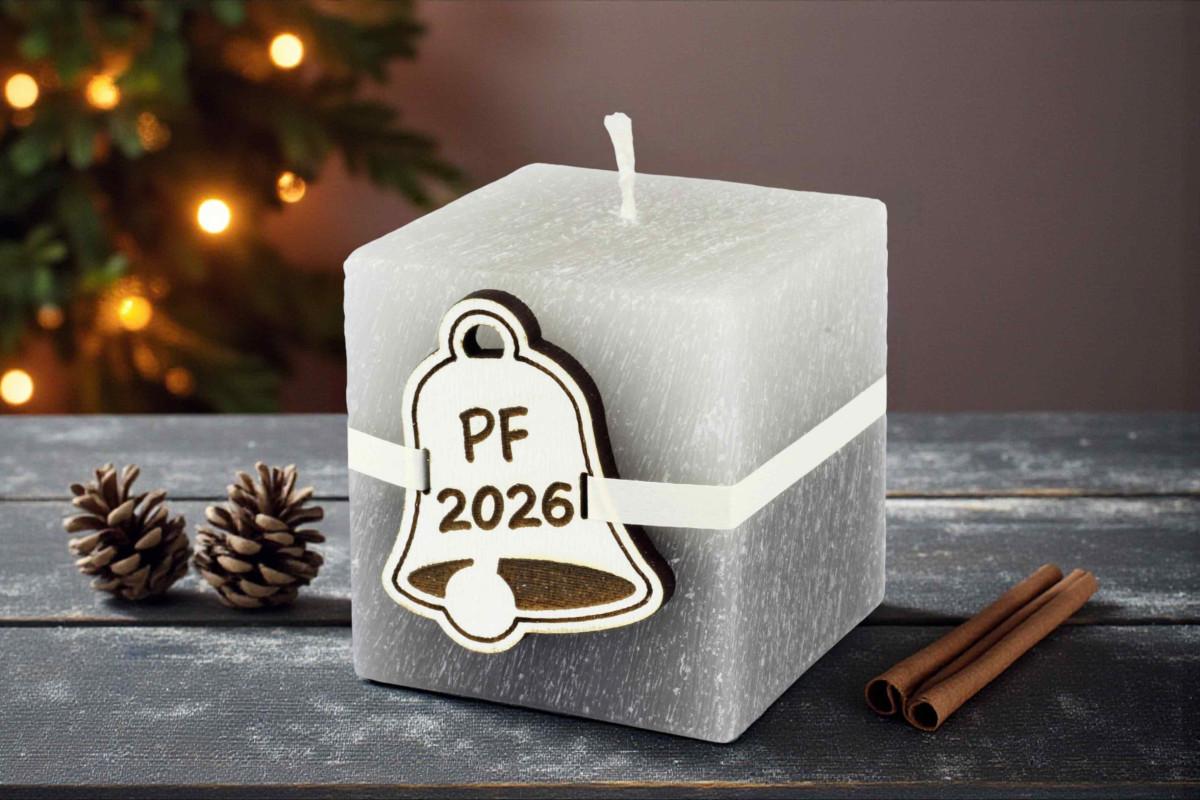 Domů » Svíčky s přáním PF 2026 » Zvonečky » Svíčka PF 2026 Zvoneček - šedá