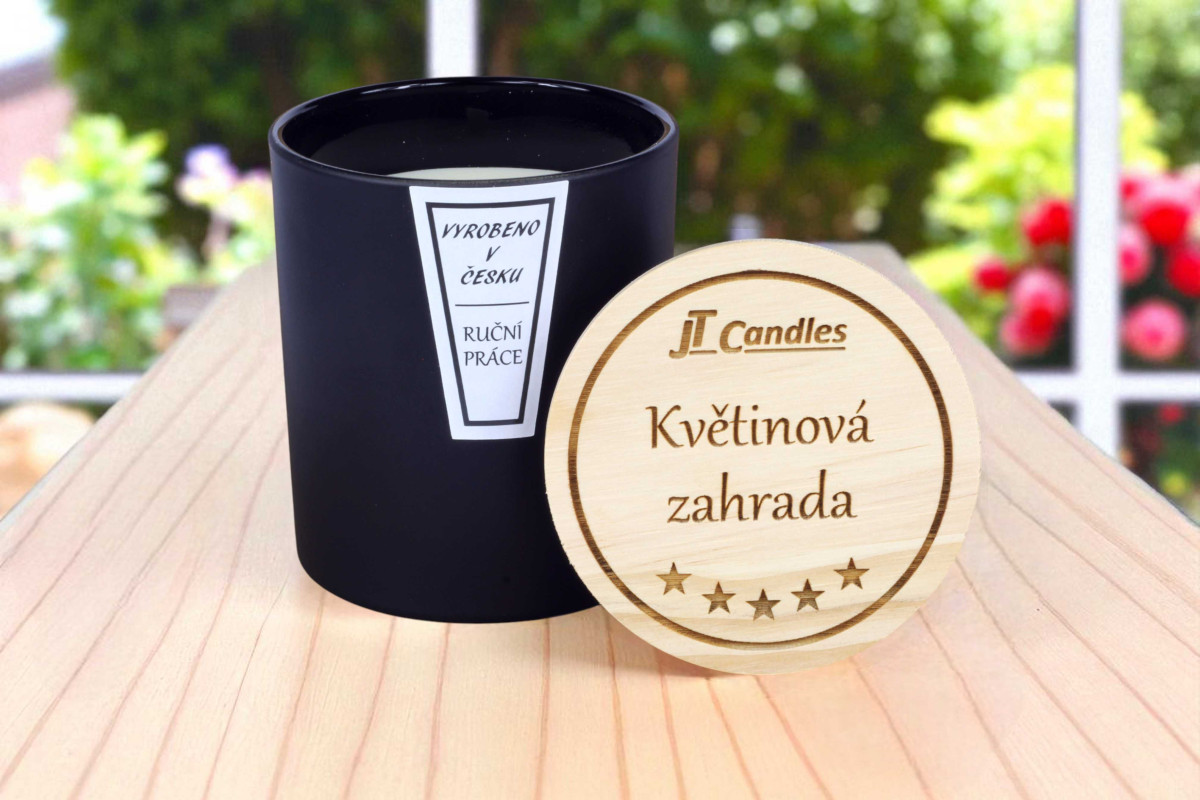 Domů » Svíčky ve skle s dřevěným víčkem » Svíčka ve skle - Květinová zahrada - černá