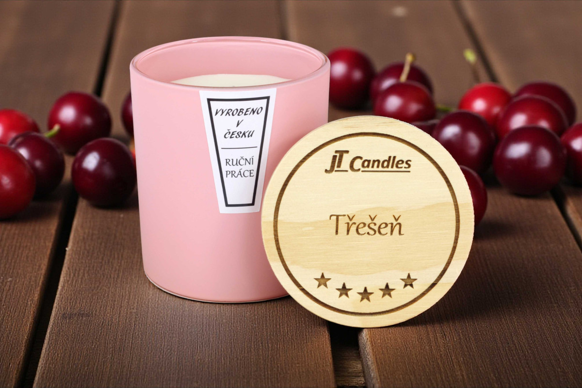 Domů » Svíčky ve skle s dřevěným víčkem » Svíčka ve skle - Třešeň - růžová